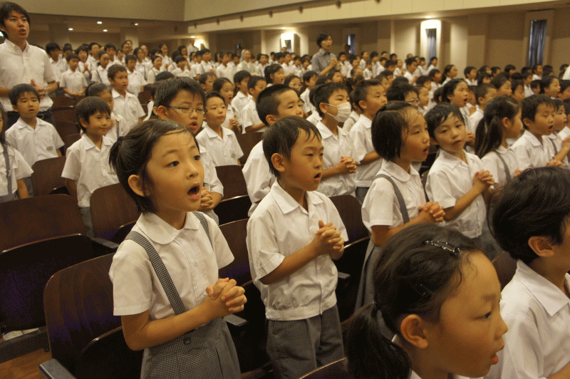 祈りの気持ちを聖歌に込めて。「神様、今学期もたくさんのお恵みをありがとうございました」