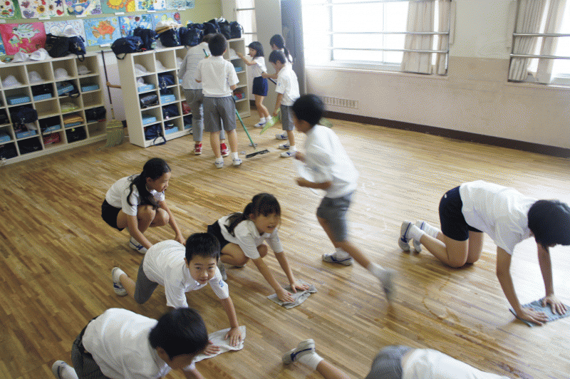 さあ、大掃除!教室にも1学期間ありがとう、ピカピカにするぞ〜!