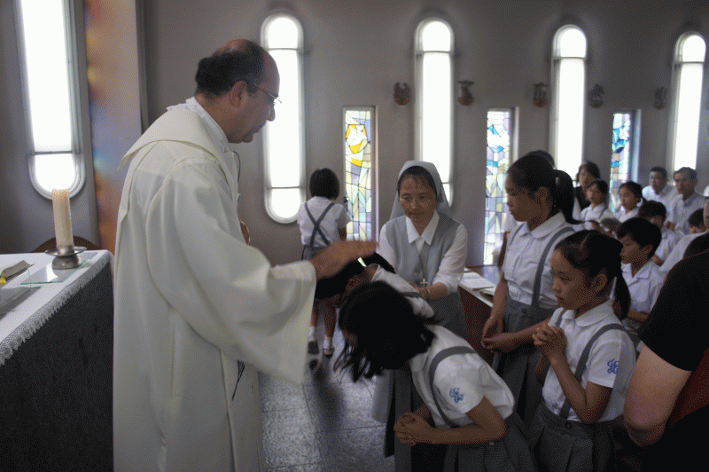 中高に来て下さっているジョバンニ神父様が司式です。明るくてわかりやすいお話、ドン・ボスコみたい。