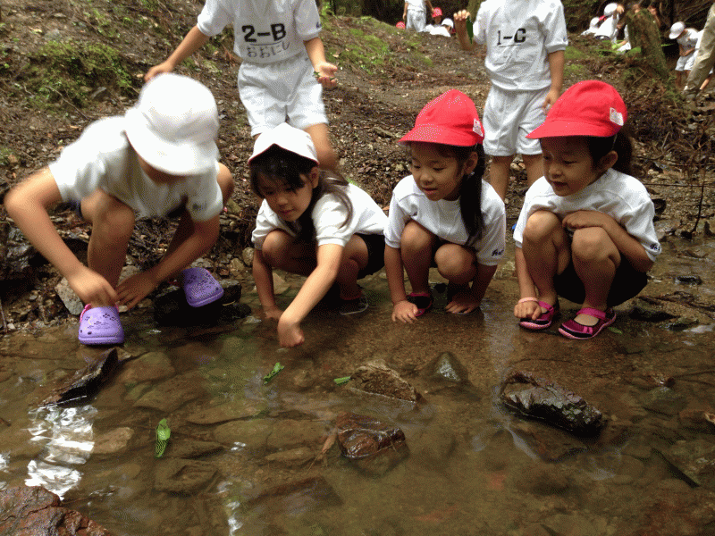 子どもたちは、普段なかなか触れ合うことのできない生き物と出合い、触れ合い、大自然を満喫中です。