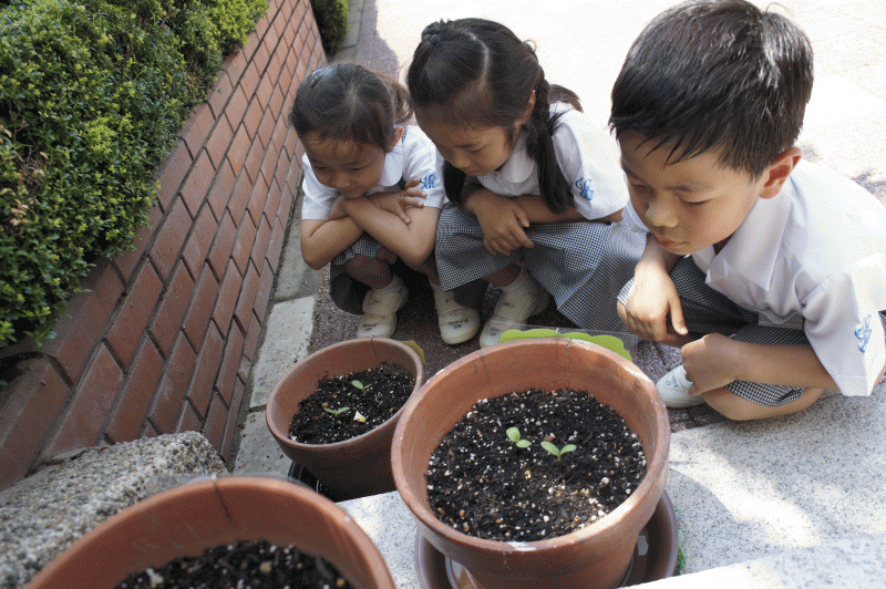 先日植えた創立者生誕200周年のひまわりが早くも芽を出しました。