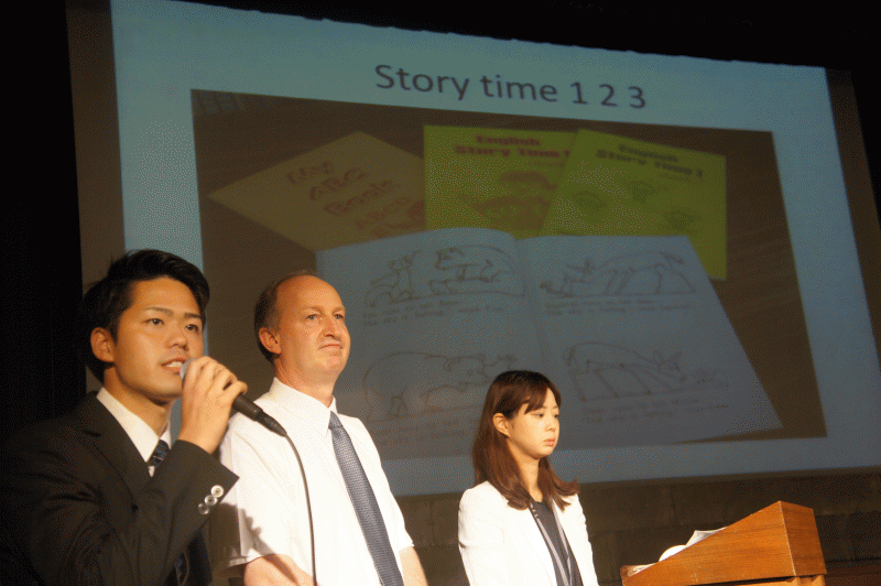城星の名物キャラ、マイロー先生と子どもに大人気の中井先生、井上先生が教科書や授業内容をお話ししました。
