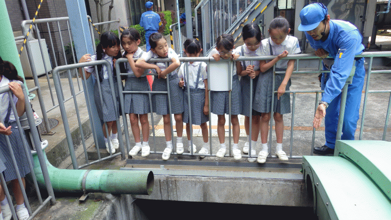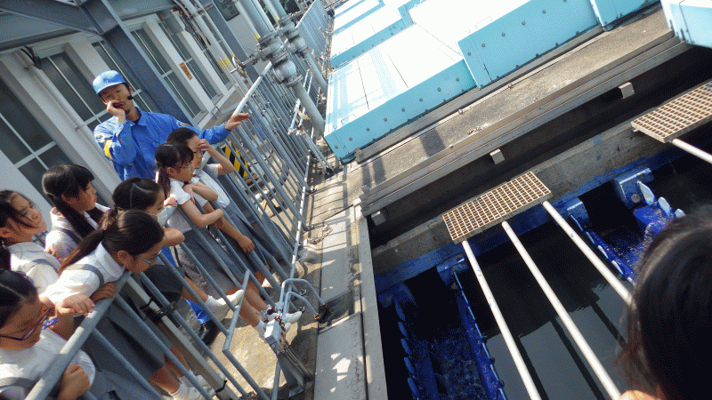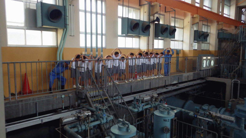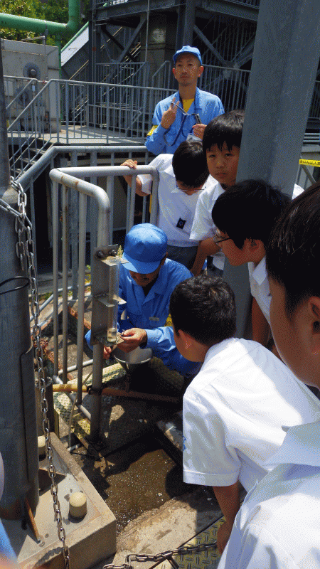 施設の方が丁寧に説明してくださいました。子どもたちからは多くの質問、「きれいになった水は飲めるの?」「一日にどれくらい水をきれいにしますか?「お給料はどこからもらいますか?」」等々、様々な質問に答えてくださりありがとうございました。