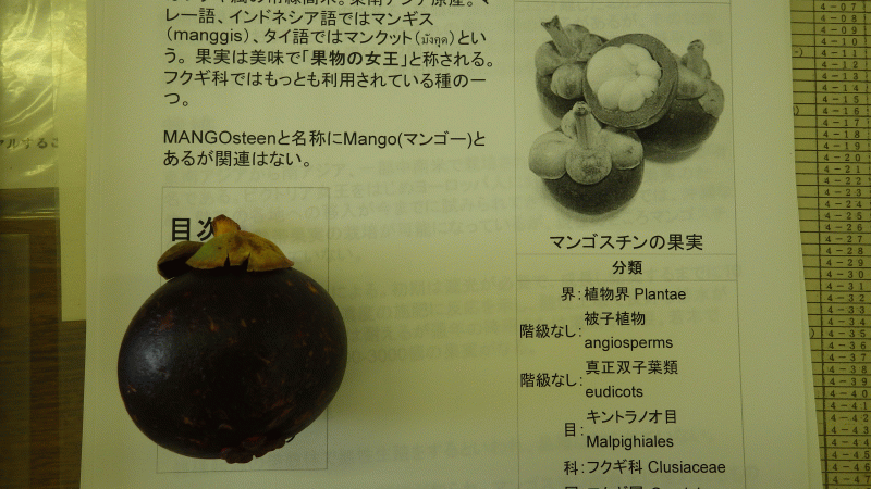 これは、マンゴスチンです。教頭先生が興味を持って買ったものだそうです。様々なものに興味を持つこと、そして学びは終わることがない「学びは最高の遊び!」というお話をしてくださいました。