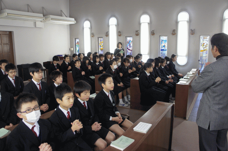 始業式の後、お御堂に集まる学年もありました。6年生は城星での6年間を総括する3学期です。