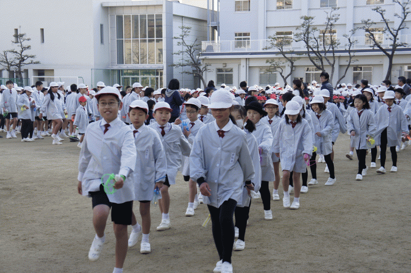 早速できることに取り組んだ子どもたち。移動は整然と行いました。