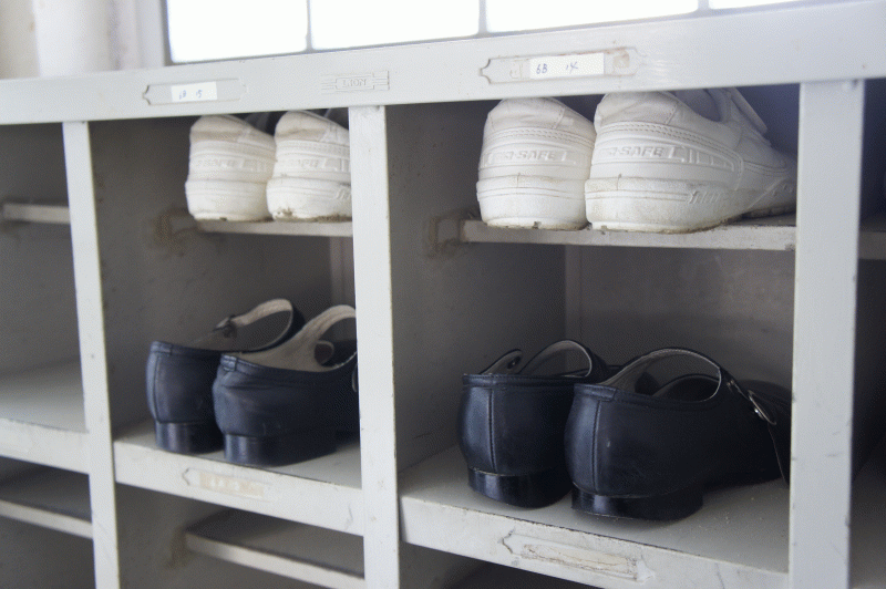 まずは靴をそろえることから。物を大切にする事、整理整頓の心を磨きます。