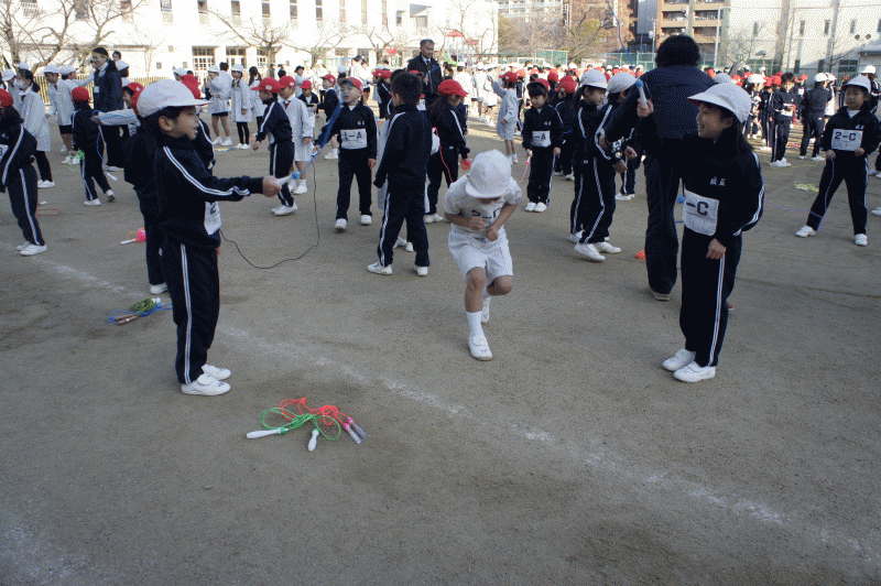 低学年の子どもたちは「なわとび」というより「なわくぐり」でした。