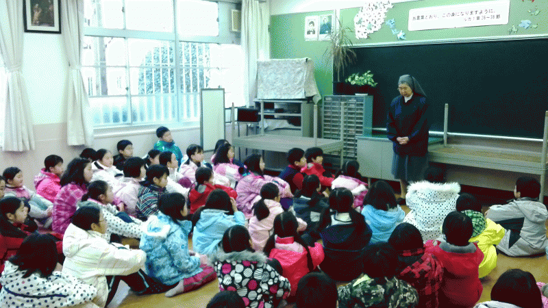 校長先生が、ヨハネパウロ2世のお話をしてくださいました。一人一人、家族の一員として自分のできることをしましょう。