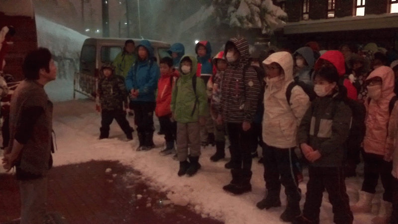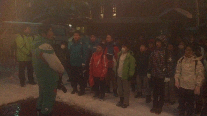 17時過ぎ定刻通りバスが宿舎に到着しました。お世話になる宿舎の方やスキーのインストラクターの先生方にご挨拶をいたしました。慣れない雪道をウキウキしながら歩いて荷物を運んでいます。