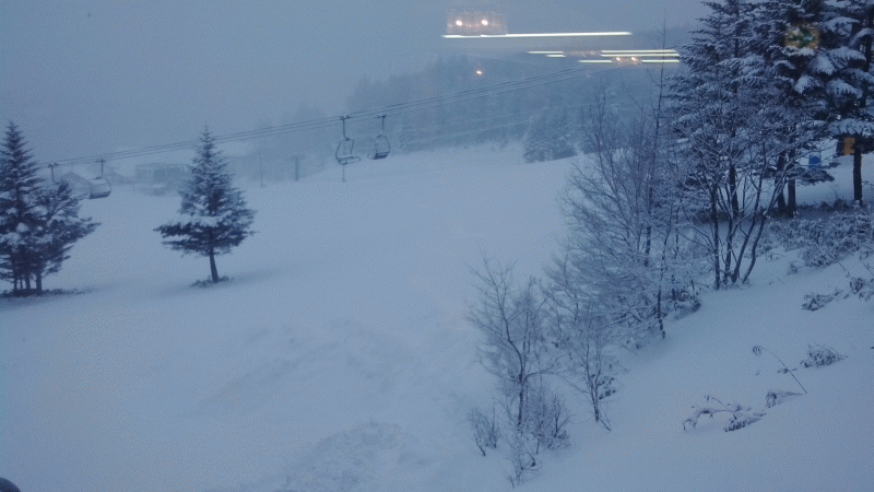現地の気温ー3度。天気は、今日も雪。ゲレンデの状態良好。土曜日ということもあり朝から多くのお客さんがスキーにきています。
