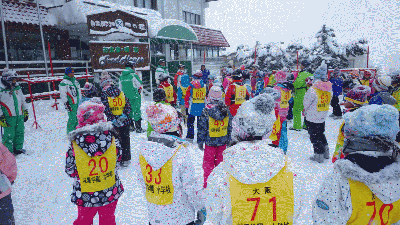 宿の方々が子どもたちの集合場所を圧雪してくれていました。今日も雪はふかふかです。
