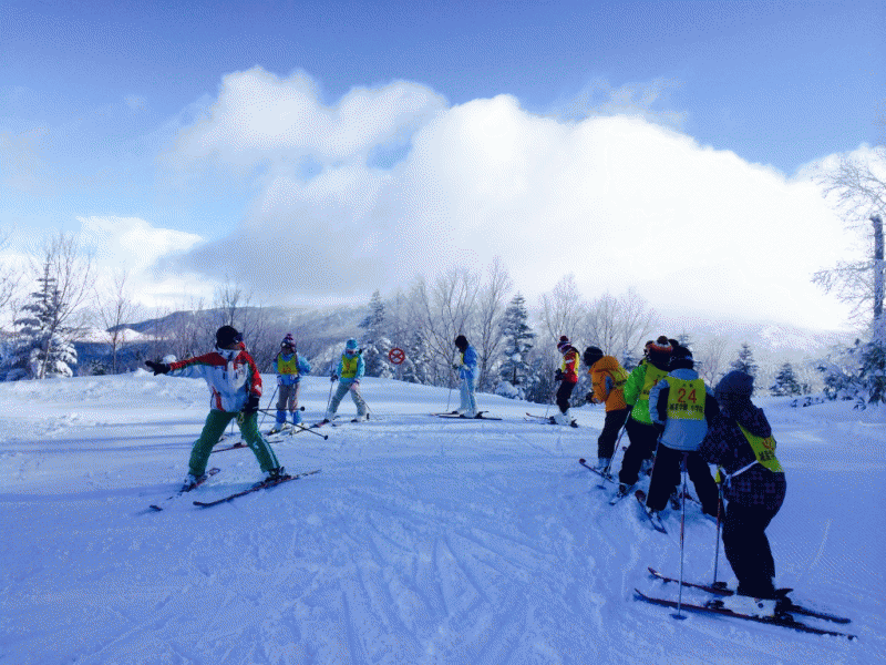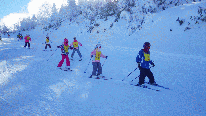 午前10時。天候は晴天。誰も滑っていないゲレンデを楽しそうに滑っていきます。昨晩から30cmの積雪があり、状態は良好。今日はダイヤモンドスキー場でレッスンしている班も出ました。