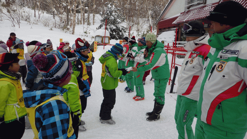 現在16時。志賀高原での最後の講習が終わりました。スキースクールの校長先生から「この厳しい条件の中頑張り続けたことこそ宝です。無事に大阪のご家族のところまで帰れるように祈ってます。」とのお言葉をいただきました。代表で6班のマルシャデス君が修了証をいただき、講習会を終えました。このあと子どもたちは、夕ご飯を食べた後、大阪に向けてバスに乗り込みます。