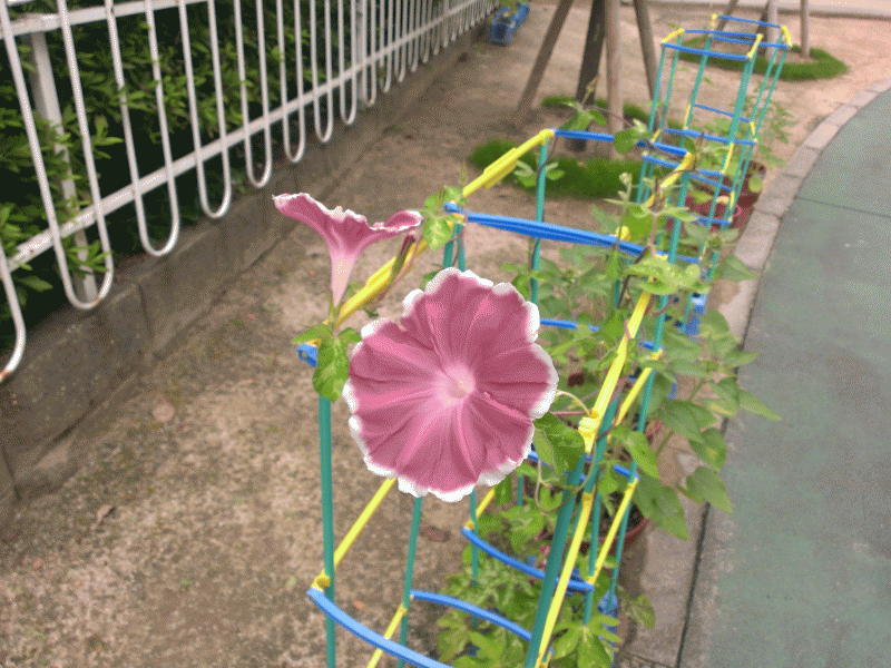 今朝、大輪の花を咲かせて子供たちを出迎えていました。