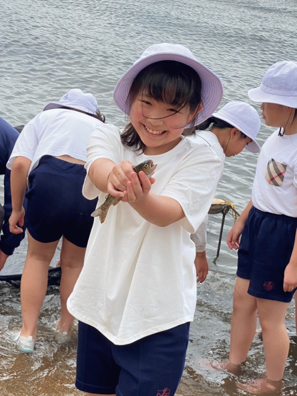 4年生魚つかみ体験