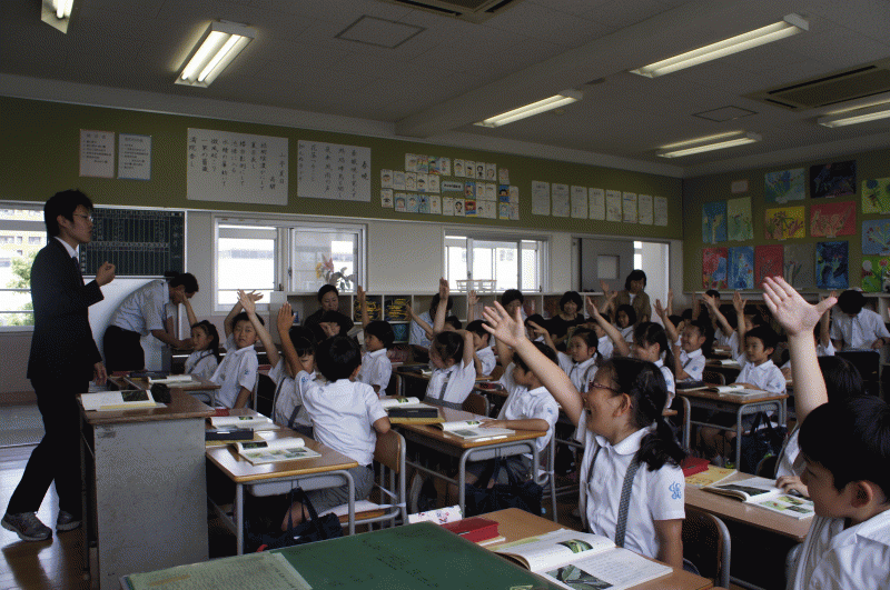 全 3004 件(全601ページ) 過去のページもご覧いただけます ⇒ 前へ 551 | 552 | 553 | 554 | 555 | 次へ 2013/6/5 研究授業 今日は2年A組で研究授業が行われました。 今日の授業は「ほたるの一生」2年生の教科書に載っているこの説明文を読み砕きます。 今日の授業は「ほたるの一生」2年生の教科書に載っているこの説明文を読み砕きます。 今年2年目の竹下先生、授業も様になっています!子どもたちの発言や学習態度から、学びの姿勢ができていることが分かります。 今年2年目の竹下先生、授業も様になっています!子どもたちの発言や学習態度から、学びの姿勢ができていることが分かります。 一つ一つの教師の発問に喰いついてくる子どもたち。その学びはノートにも表れています。 一つ一つの教師の発問に喰いついてくる子どもたち。その学びはノートにも表れています。 長文の学習は2回目です。読みの時間を多くとり、しっかり頭の中で文章を理解します。 長文の学習は2回目です。読みの時間を多くとり、しっかり頭の中で文章を理解します。 今回の研究授業、子どもたちも先生もよく頑張りました! 今回の研究授業、子どもたちも先生もよく頑張りました! 研究授業 2013/6/5 今日は2年A組で研究授業が行われました。 今日の授業は「ほたるの一生」2年生の教科書に載っているこの説明文を読み砕きます。 今日の授業は「ほたるの一生」2年生の教科書に載っているこの説明文を読み砕きます。 今年2年目の竹下先生、授業も様になっています!子どもたちの発言や学習態度から、学びの姿勢ができていることが分かります。 今年2年目の竹下先生、授業も様になっています!子どもたちの発言や学習態度から、学びの姿勢ができていることが分かります。 一つ一つの教師の発問に喰いついてくる子どもたち。その学びはノートにも表れています。 一つ一つの教師の発問に喰いついてくる子どもたち。その学びはノートにも表れています。 長文の学習は2回目です。読みの時間を多くとり、しっかり頭の中で文章を理解します。 長文の学習は2回目です。読みの時間を多くとり、しっかり頭の中で文章を理解します。 今回の研究授業、子どもたちも先生もよく頑張りました! 今回の研究授業、子どもたちも先生もよく頑張りました! 2013/6/5 おにぎり献金 今日はおにぎり弁当の日です。 どのクラスでもおにぎりをほおばっていました!大きいのがあれば小さいのも、ふりかけや鮭、具もそれぞれ。 どのクラスでもおにぎりをほおばっていました!大きいのがあれば小さいのも、ふりかけや鮭、具もそれぞれ。 先生も一緒におにぎりです。 先生も一緒におにぎりです。 おにぎり献金 2013/6/5 今日はおにぎり弁当の日です。 どのクラスでもおにぎりをほおばっていました!大きいのがあれば小さいのも、ふりかけや鮭、具もそれぞれ。 どのクラスでもおにぎりをほおばっていました!大きいのがあれば小さいのも、ふりかけや鮭、具もそれぞれ。 先生も一緒におにぎりです。 先生も一緒におにぎりです。 2013/6/4 読書月間 6月は読書月間です。 梅雨に入りましたが、天気の日が続いています。読書月では、朝会の前にみんな読書をします。集中して本にかじりついていますね。 梅雨に入りましたが、天気の日が続いています。読書月では、朝会の前にみんな読書をします。集中して本にかじりついていますね。 年に3回の読書月間で子どもたちは、たくさんの本と出会います。みんな何かいい本が見つかったら、紹介してくださいね! 年に3回の読書月間で子どもたちは、たくさんの本と出会います。みんな何かいい本が見つかったら、紹介してくださいね! 読書月間 2013/6/4 6月は読書月間です。 梅雨に入りましたが、天気の日が続いています。読書月では、朝会の前にみんな読書をします。集中して本にかじりついていますね。 梅雨に入りましたが、天気の日が続いています。読書月では、朝会の前にみんな読書をします。集中して本にかじりついていますね。 年に3回の読書月間で子どもたちは、たくさんの本と出会います。みんな何かいい本が見つかったら、紹介してくださいね! 年に3回の読書月間で子どもたちは、たくさんの本と出会います。みんな何かいい本が見つかったら、紹介してくださいね! 2013/6/3 陸上記録会、表彰 今週月曜日の宗教朝会では、先日行われた陸上記録会の表彰が行われました。 今回表彰されたのは。走り幅跳び1位・・・6年 竹内智英くん走り高跳び1位・・・6年 伯井悠真くん男子リレー1位・・・6年 岩本浩希くん 伯井悠真くん 田中航貴くん 北村龍太郎くん女子リレー2位・・・6年 川口瑠菜さん 清水華凛さん 杉本佳名子さん 中村日菜さんみんな一生懸命頑張りました。 今回表彰されたのは。走り幅跳び1位・・・6年 竹内智英くん走り高跳び1位・・・6年 伯井悠真くん男子リレー1位・・・6年 岩本浩希くん 伯井悠真くん 田中航貴くん 北村龍太郎くん女子リレー2位・・・6年 川口瑠菜さん 清水華凛さん 杉本佳名子さん 中村日