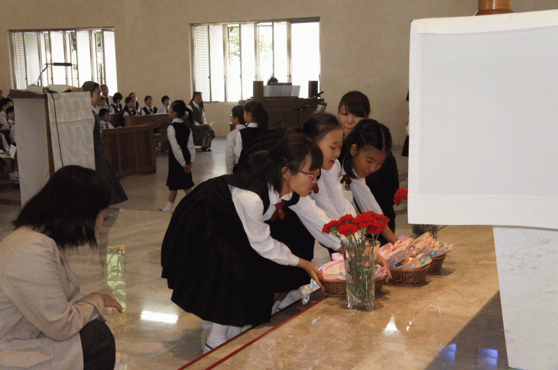 全 3004 件(全601ページ) 過去のページもご覧いただけます ⇒ 前へ 551 | 552 | 553 | 554 | 555 | 次へ 2013/5/22 聖母祭 本日、城星学園小学校は聖母祭です。 聖母マリア様を記念して行われる聖母祭、お隣の聖マリア大聖堂でミサが執り行われました。 聖母マリア様を記念して行われる聖母祭、お隣の聖マリア大聖堂でミサが執り行われました。 このミサに向けて、子どもたちは9日間の「徳の花」を行いました。今日はこの「徳の花カード」と「カーネーション」「マリア様の絵」を奉納しました。 このミサに向けて、子どもたちは9日間の「徳の花」を行いました。今日はこの「徳の花カード」と「カーネーション」「マリア様の絵」を奉納しました。 パズルのような形で描かれたマリア様、きれいに浮かび上がりました。 パズルのような形で描かれたマリア様、きれいに浮かび上がりました。 サレジオ会の鈴木神父様が式を執り行ってくださいました。 サレジオ会の鈴木神父様が式を執り行ってくださいました。 奉納では聖歌隊も美しい歌声を響かせました。 奉納では聖歌隊も美しい歌声を響かせました。 いっぱい歌って、いっぱいお祈りした聖母祭の御ミサでした。 いっぱい歌って、いっぱいお祈りした聖母祭の御ミサでした。 聖母祭 2013/5/22 本日、城星学園小学校は聖母祭です。 聖母マリア様を記念して行われる聖母祭、お隣の聖マリア大聖堂でミサが執り行われました。 聖母マリア様を記念して行われる聖母祭、お隣の聖マリア大聖堂でミサが執り行われました。 このミサに向けて、子どもたちは9日間の「徳の花」を行いました。今日はこの「徳の花カード」と「カーネーション」「マリア様の絵」を奉納しました。 このミサに向けて、子どもたちは9日間の「徳の花」を行いました。今日はこの「徳の花カード」と「カーネーション」「マリア様の絵」を奉納しました。 パズルのような形で描かれたマリア様、きれいに浮かび上がりました。 パズルのような形で描かれたマリア様、きれいに浮かび上がりました。 サレジオ会の鈴木神父様が式を執り行ってくださいました。 サレジオ会の鈴木神父様が式を執り行ってくださいました。 奉納では聖歌隊も美しい歌声を響かせました。 奉納では聖歌隊も美しい歌声を響かせました。 いっぱい歌って、いっぱいお祈りした聖母祭の御ミサでした。 いっぱい歌って、いっぱいお祈りした聖母祭の御ミサでした。 2013/5/22 低学年奉仕活動 明日は聖母祭です。低学年の子どもたちは、奉仕活動として明日ミサが行われる「聖マリア大聖堂」の掃除を行いました。 各クラスで掃除の場所を決め、広い大聖堂の雑巾がけをしました。 各クラスで掃除の場所を決め、広い大聖堂の雑巾がけをしました。 おかげで明日は気持の良い聖母祭を迎えられます。 おかげで明日は気持の良い聖母祭を迎えられます。 低学年奉仕活動 2013/5/22 明日は聖母祭です。低学年の子どもたちは、奉仕活動として明日ミサが行われる「聖マリア大聖堂」の掃除を行いました。 各クラスで掃除の場所を決め、広い大聖堂の雑巾がけをしました。 各クラスで掃除の場所を決め、広い大聖堂の雑巾がけをしました。 おかげで明日は気持の良い聖母祭を迎えられます。 おかげで明日は気持の良い聖母祭を迎えられます。 2013/5/21 クラブの日 毎週火曜日は、委員会かクラブ活動の日です。 さまざまなクラブ活動があります。今日はちょっと紹介します。まずはアンサンブル。前田先生の指導の下、3年生も参加して腕を磨いています。 さまざまなクラブ活動があります。今日はちょっと紹介します。まずはアンサンブル。前田先生の指導の下、3年生も参加して腕を磨いています。 音楽クラブはもう一つ、聖歌隊。明後日の聖母祭に向けて大詰めの練習です。 音楽クラブはもう一つ、聖歌隊。明後日の聖母祭に向けて大詰めの練習です。 化学園芸のクラブはブーメランを作りました!うまく戻って・・・なかなか難しいようですね。 化学園芸のクラブはブーメランを作りました!うまく戻って・・・なかなか難しいようですね。 体育館では、バスケットボールと、ドッジボールのクラブが熱い戦いを繰り広げていました。 体育館では、バスケットボールと、ドッジボールのクラブが熱い戦いを繰り広げていました。 グラウンドでは、ソフトボールとサッカークラブが汗を流しています。 グラウンドでは、ソフトボールとサッカークラブが汗を流しています。 手芸クラブはマスコットづくり、先生も一緒に作っています。 手芸クラブはマスコットづくり、先生も一緒に作っています。 パソコンクラブは、様々な打ち込みの学習。 パソコンクラブは、様々な打ち込みの学習。 卓球クラブは犬塚先生の「鬼のスマッシュ」が見られます! 卓球クラブは犬塚先生の「鬼のスマッシュ」が見られます! クラブの日 2013/5/21 毎週火曜日は、委員会かクラブ活動の日です。 さまざまなクラブ活動があります。今日はちょっと紹介します。まず