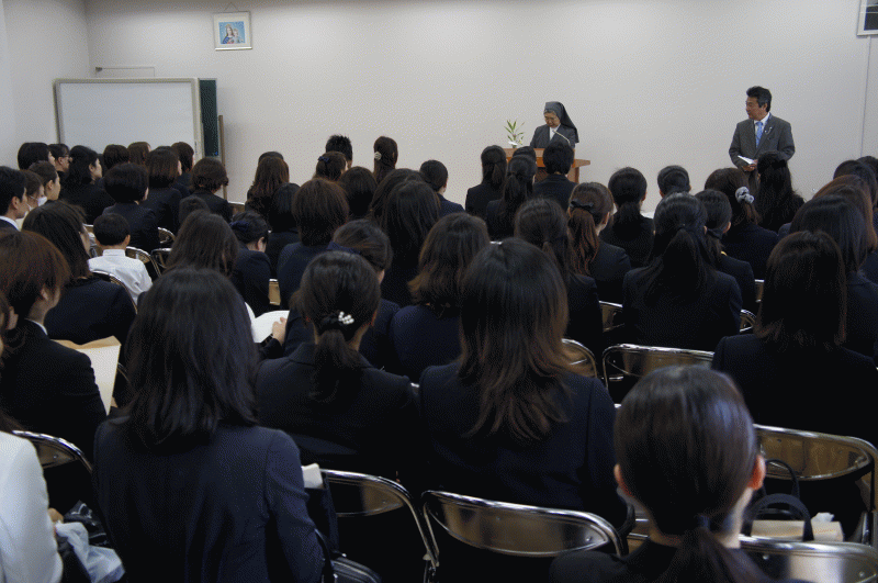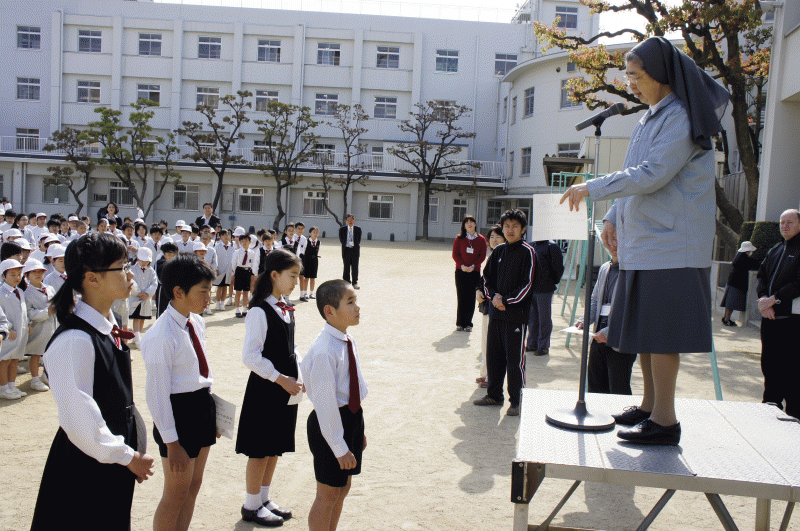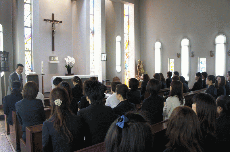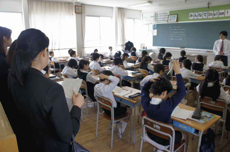 お祈りをして聖歌を歌います。まだ習いたての聖歌ですが元気に歌えていました。