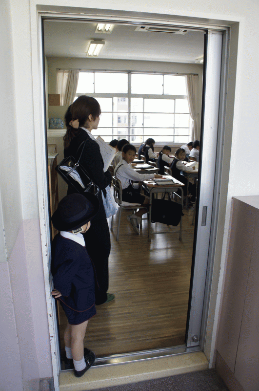 中にはかわいらしい見学者も、小学校のお勉強はどうかな?楽しそう?