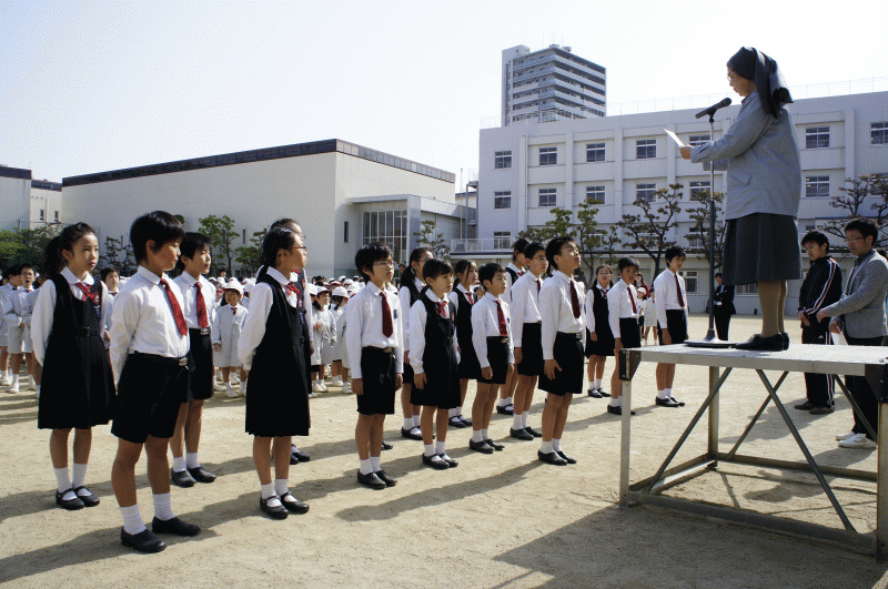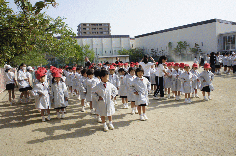 今日は1年生の子どもたちも外朝会を見学しに来ました。