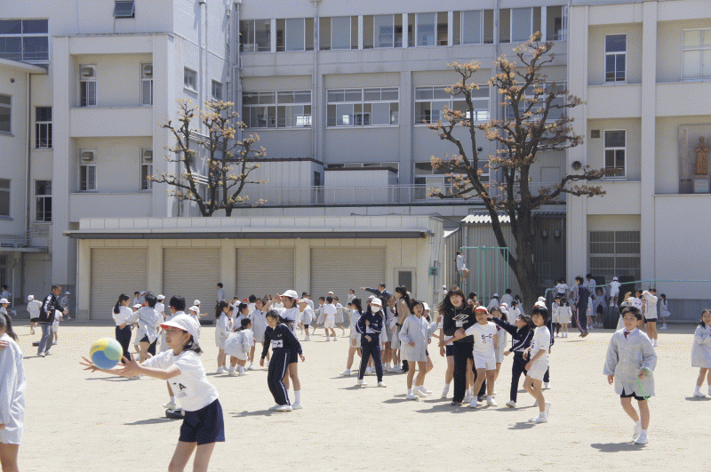学年を超えて一緒に遊ぶ姿、いいですね。来週からは、1年生もこの楽しい休み時間に加わります。みなさん一緒に遊んであげてくださいね。