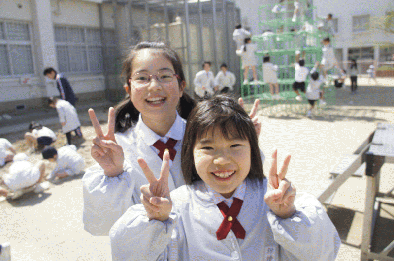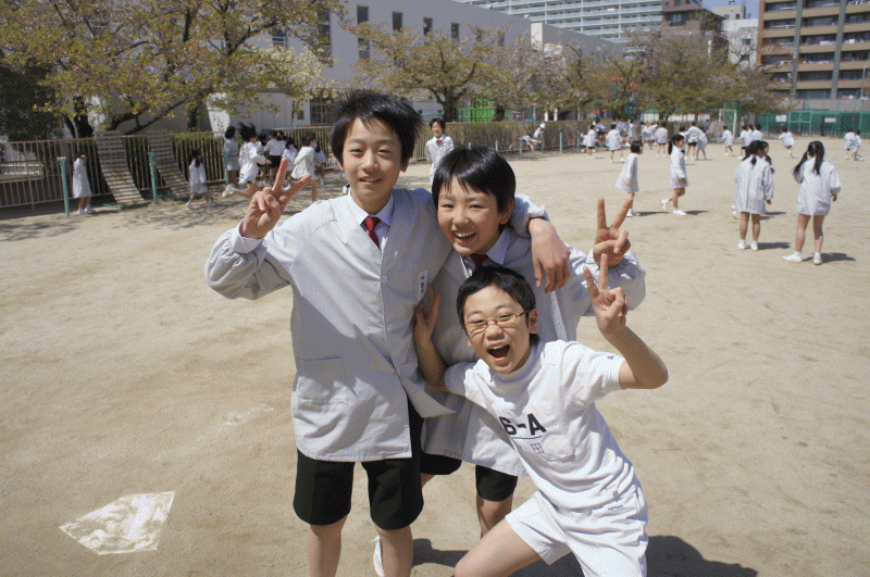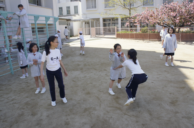 城星学園小学校の運動場では、いつも先生たちが一緒になって子どもたちと遊んでいます。鬼ごっこ、砂遊び、縄跳び、鉄棒…今日はどの子と何をして遊ぼうかな?