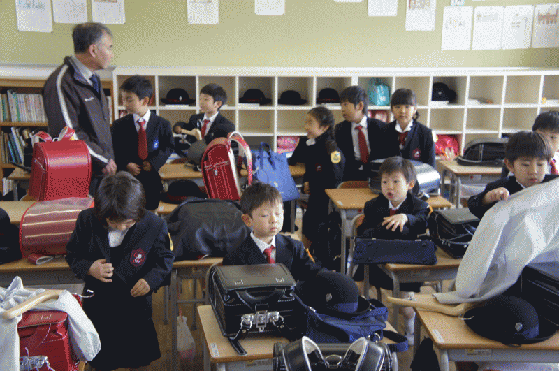1年生は午前中で学校は終わり、帰りの準備はバタバタです。
