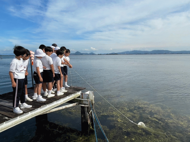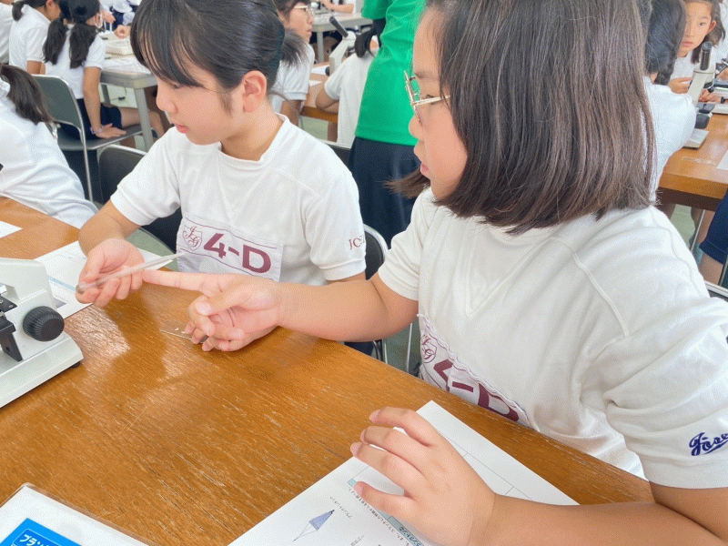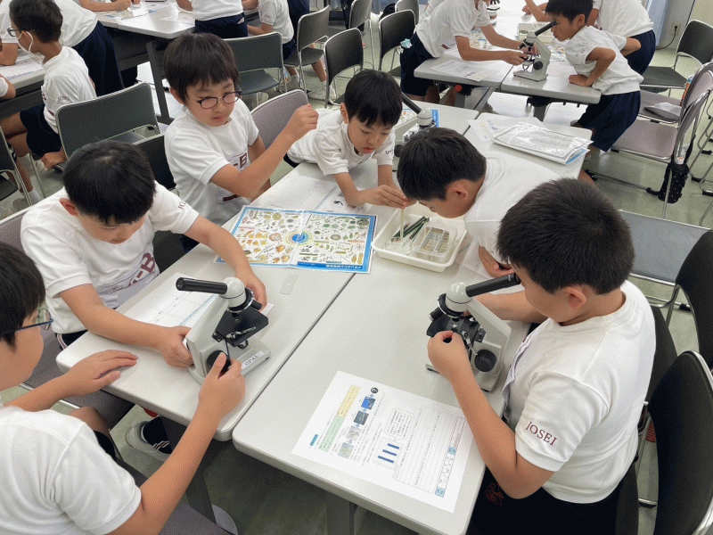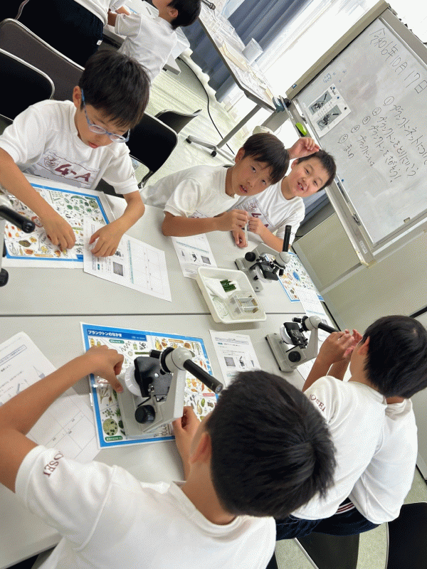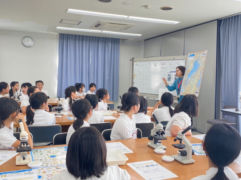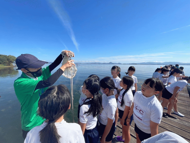 専門のネットを使い、実際に琵琶湖の水を収集して顕微鏡で観察しました。