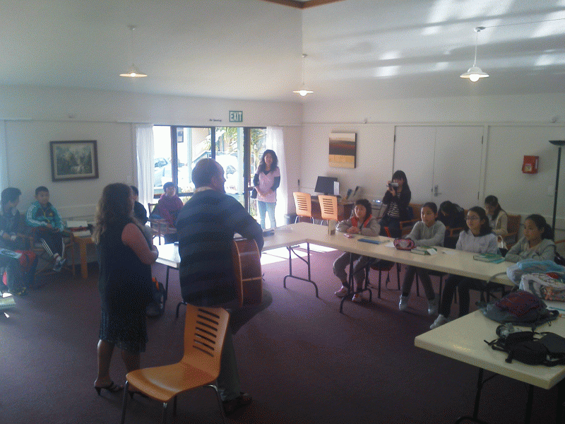 今日は朝から英語のレッスンです。ホームステイ先から車で集合し、学校で授業を受けています。音楽あり、ジョークあり、とっても楽しい時間が過ぎています。ロス先生から様々な質問が出されちょっとたじたじな一行でした。みんな元気に授業を受けています。