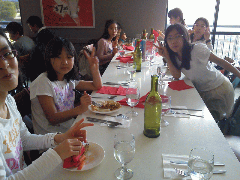 地下水族館を見学し一行は、お昼ご飯。海外の食べ物に戸惑いながらもしっかりデザートまで食べて大満足。