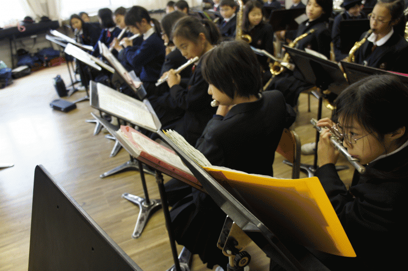 朝から学校で練習をしていたウィンドアンサンブルの子どもたち。