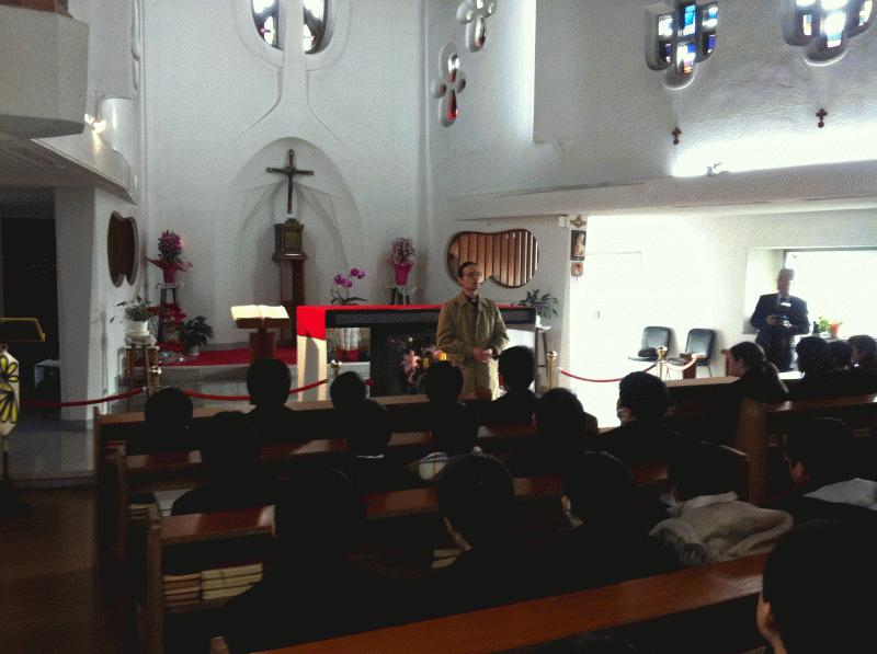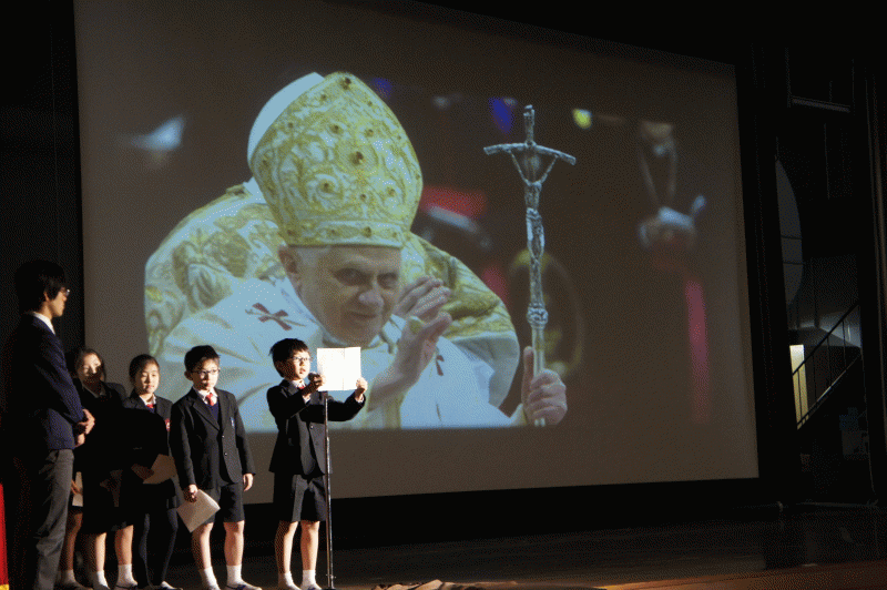 今日は音楽朝会に続いて、典礼集会が行われました。