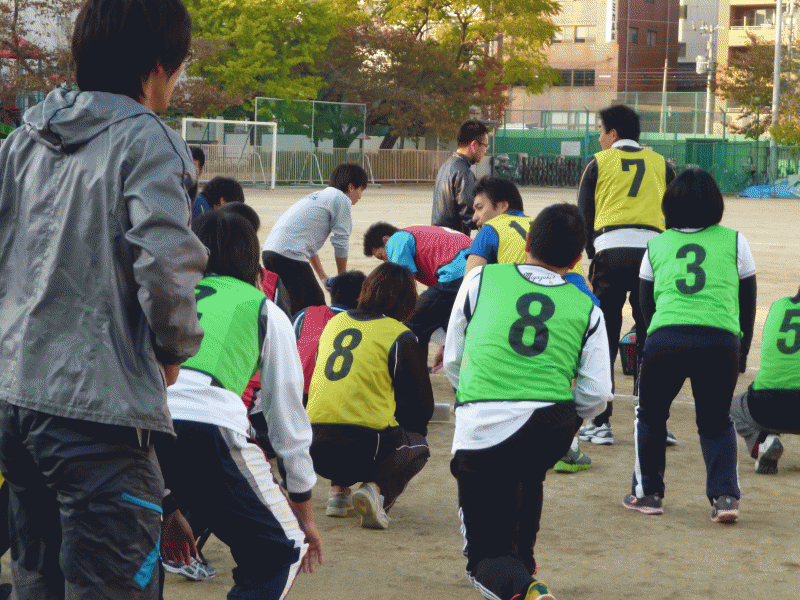 体育部会ではフリスビーを使った「アルティメット」というスポーツを広いグラウンドを使い行いました。白熱した戦いです。