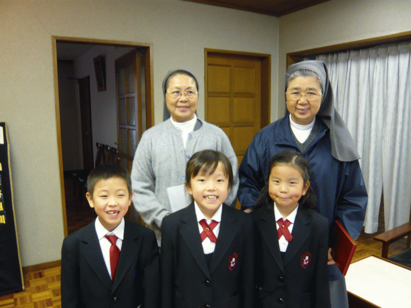 今日は1年生の子ども達がシスターを訪れ、おにぎり献金の一部をお渡ししました。ボリビアの恵まれない子ども達のために使われます。