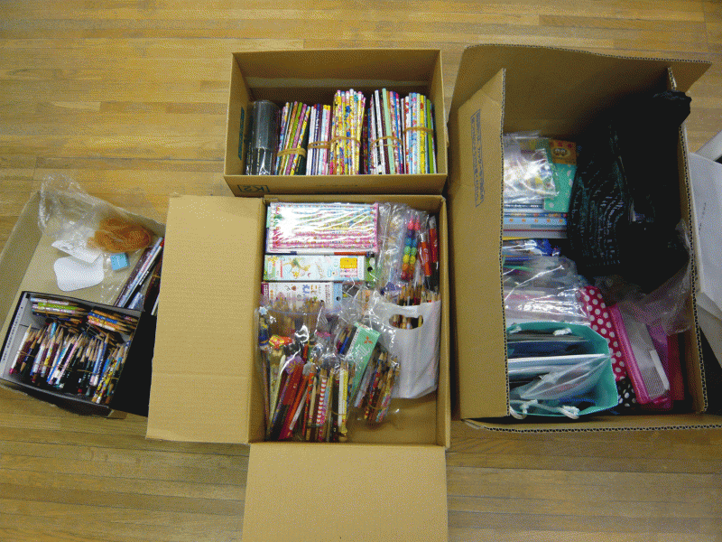 先日お願いした、鉛筆は段ボール箱4箱分も集まりました。