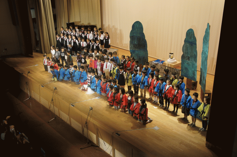 かわいい一年生の姿に客席も沸きました!「友達」をつくること、人のために何かをすること。この劇を通して子どもたちが伝えてくれました。