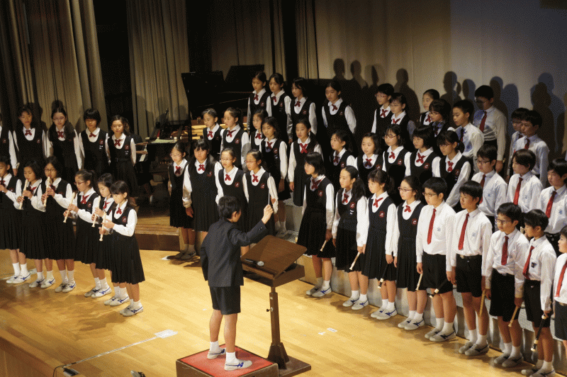 音楽を通してお祈りする。5年生の歌声で講堂が満たされました。最後に演奏したリコーダー合奏「ハレルヤ」の後には「ブラヴォー」の声が上がりました。