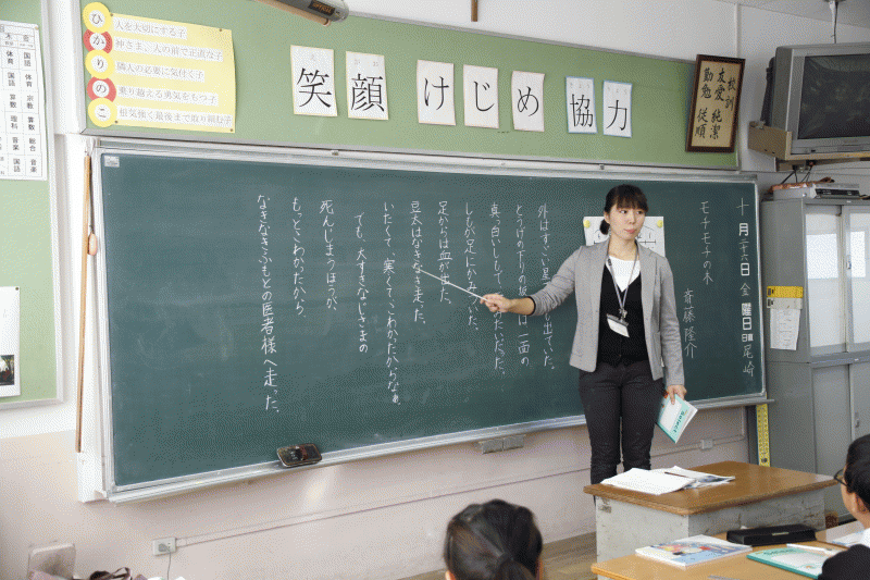 3年生の渡邊先生が「モチモチに木」を使って国語の授業を行しました。