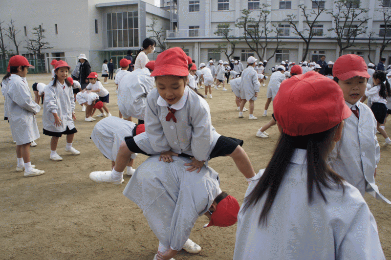 火曜日は運動朝会が行われます。今日は馬跳びをしました。