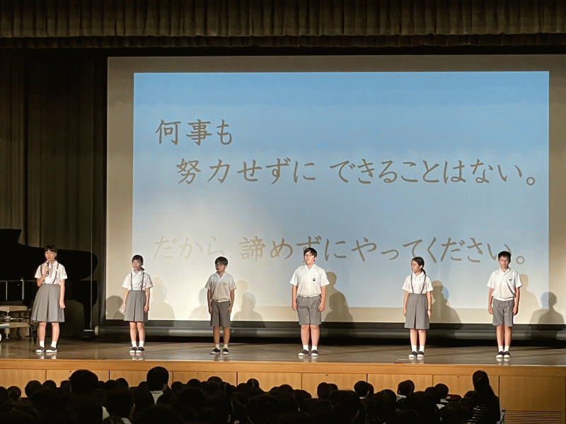 心のねっこ・学びのねっこを育てるために、周りの人とともに喜べる日々を過ごしてほしいという校長先生のお話を聞きました。