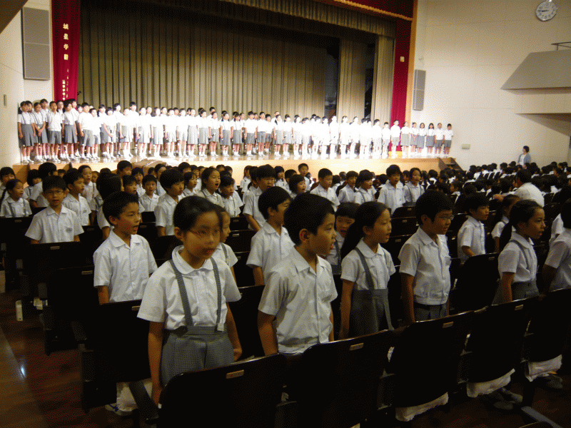 読書月間中ですが、今日は朝から講堂に子どもたちが集まっています。