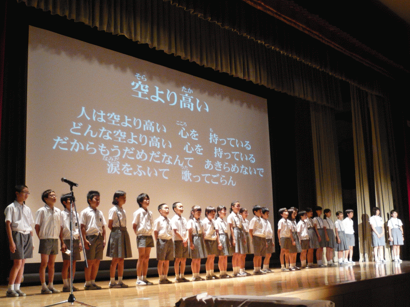 典礼集会では、高学年が地震の後に残された子どのたちについての発表をしてくれました。