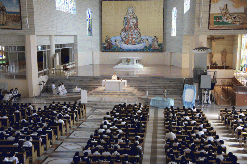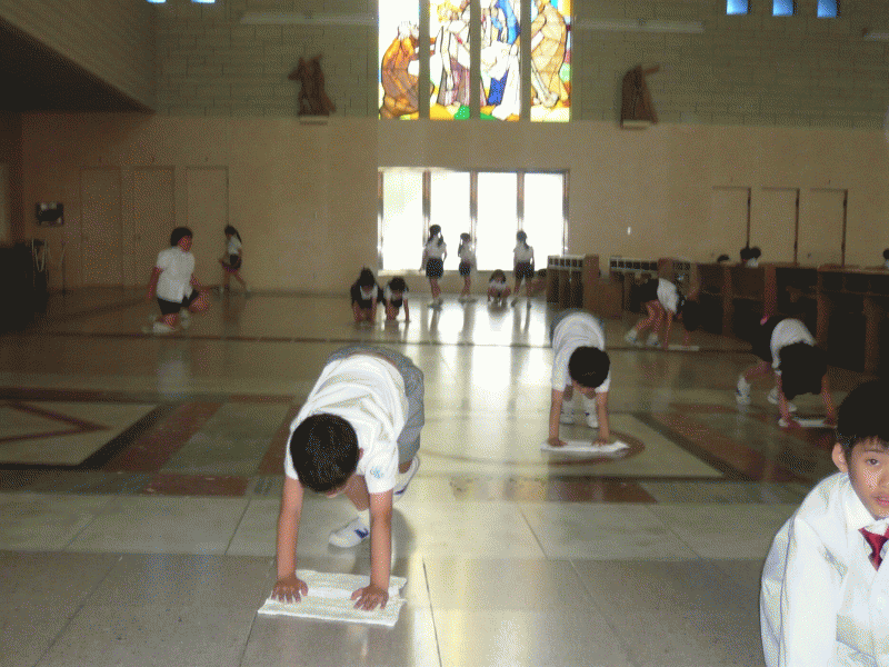 全 3007 件(全602ページ) 過去のページもご覧いただけます ⇒ 前へ 591 | 592 | 593 | 594 | 595 | 次へ 2012/5/24 聖母祭 本日は「聖母祭」です。 扶助者聖マリア様のお祝いをする本日の聖母祭、お隣のマリア大聖堂でミサを行いました。 扶助者聖マリア様のお祝いをする本日の聖母祭、お隣のマリア大聖堂でミサを行いました。 今回の司式は星光学園の谷神父様です。 今回の司式は星光学園の谷神父様です。 子どもたちが九日間行った「徳の花」もパズルにしてお捧します。 子どもたちが九日間行った「徳の花」もパズルにしてお捧します。 1年生は初めての御ミサです、6年生がよく面倒を見てくれました。 1年生は初めての御ミサです、6年生がよく面倒を見てくれました。 150人弱の保護者の方も一緒に御ミサにあずかりました。また、今日は今年度から発足した「聖歌隊」が式の中で素晴らしい歌声を響かせました。 150人弱の保護者の方も一緒に御ミサにあずかりました。また、今日は今年度から発足した「聖歌隊」が式の中で素晴らしい歌声を響かせました。 聖母祭 2012/5/24 本日は「聖母祭」です。 扶助者聖マリア様のお祝いをする本日の聖母祭、お隣のマリア大聖堂でミサを行いました。 扶助者聖マリア様のお祝いをする本日の聖母祭、お隣のマリア大聖堂でミサを行いました。 今回の司式は星光学園の谷神父様です。 今回の司式は星光学園の谷神父様です。 子どもたちが九日間行った「徳の花」もパズルにしてお捧します。 子どもたちが九日間行った「徳の花」もパズルにしてお捧します。 1年生は初めての御ミサです、6年生がよく面倒を見てくれました。 1年生は初めての御ミサです、6年生がよく面倒を見てくれました。 150人弱の保護者の方も一緒に御ミサにあずかりました。また、今日は今年度から発足した「聖歌隊」が式の中で素晴らしい歌声を響かせました。 150人弱の保護者の方も一緒に御ミサにあずかりました。また、今日は今年度から発足した「聖歌隊」が式の中で素晴らしい歌声を響かせました。 2012/5/23 明日のために・・・ 今日、低学年のこどもたちは隣の大聖堂に出かけました。 みんなぞうきんを持って大聖堂の掃除です。明日の聖母祭を迎えるためにきれいに掃除してくれました。 みんなぞうきんを持って大聖堂の掃除です。明日の聖母祭を迎えるためにきれいに掃除してくれました。 奉仕活動として行った今回の大聖堂の清掃。 奉仕活動として行った今回の大聖堂の清掃。 終わった後はみんなでぞうきんを手洗いしました。サマースクールの為のリハーサルです、サマースクールでは靴下を洗う予定です。 終わった後はみんなでぞうきんを手洗いしました。サマースクールの為のリハーサルです、サマースクールでは靴下を洗う予定です。 明日のために・・・ 2012/5/23 今日、低学年のこどもたちは隣の大聖堂に出かけました。 みんなぞうきんを持って大聖堂の掃除です。明日の聖母祭を迎えるためにきれいに掃除してくれました。 みんなぞうきんを持って大聖堂の掃除です。明日の聖母祭を迎えるためにきれいに掃除してくれました。 奉仕活動として行った今回の大聖堂の清掃。 奉仕活動として行った今回の大聖堂の清掃。 終わった後はみんなでぞうきんを手洗いしました。サマースクールの為のリハーサルです、サマースクールでは靴下を洗う予定です。 終わった後はみんなでぞうきんを手洗いしました。サマースクールの為のリハーサルです、サマースクールでは靴下を洗う予定です。 2012/5/22 プール学習に向けて 心肺蘇生法研修 来月からプールが始まります。本校では本格的な室内温水プール「サンタマリア・スイミングスクール」で水泳の授業を行っています。 毎年、水泳の授業が始まる前に教員全員で「心肺蘇生法研修」を行っています。講師はスイミングスクールの主任である高岸先生です。 毎年、水泳の授業が始まる前に教員全員で「心肺蘇生法研修」を行っています。講師はスイミングスクールの主任である高岸先生です。 教師一人一人がもしもの時のために正しい応急処置が出来るように、先生も真剣です。 教師一人一人がもしもの時のために正しい応急処置が出来るように、先生も真剣です。 さあ、プールも準備万端!今年も思いっきり泳ぎましょう。 さあ、プールも準備万端!今年も思いっきり泳ぎましょう。 プール学習に向けて 心肺蘇生法研修 2012/5/22 来月からプールが始まります。本校では本格的な室内温水プール「サンタマリア・スイミングスクール」で水泳の授業を行っています。 毎年、水泳の授業が始まる前に教員全員で「心肺蘇生法研修」を行っています。講師はスイミングスクールの主任である高岸先生です。 毎年、水泳の授業が始まる前に教員全員で「心肺蘇生法研修」を行っています。講師はスイミングスクールの主任である高岸先生です。 教師一人一人がもしもの時のために正しい応急処置が出来るように、先生も真剣です。 教師一人一人がもしもの時