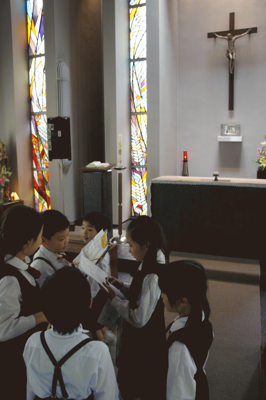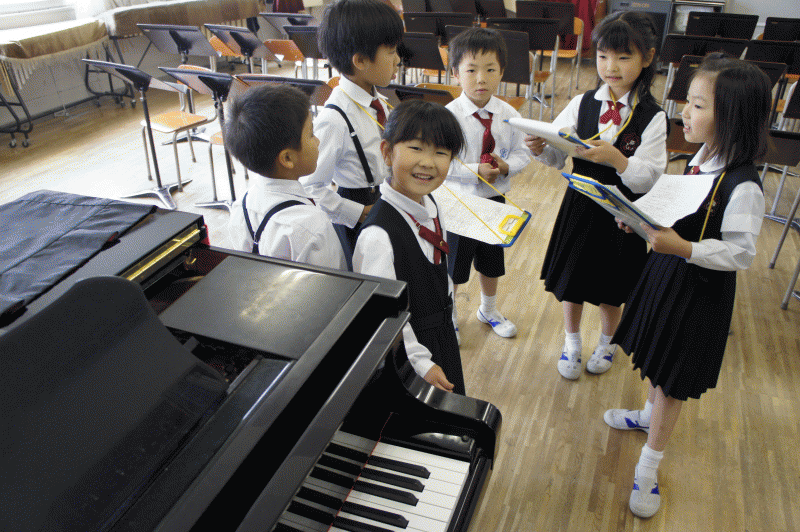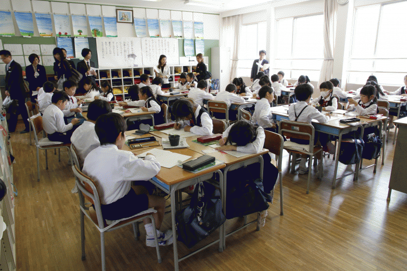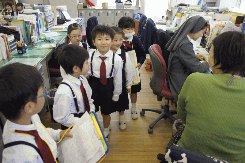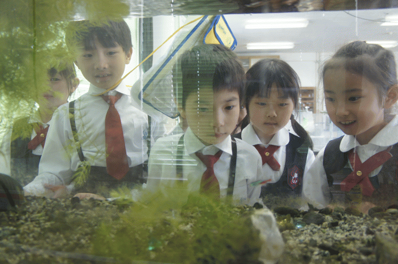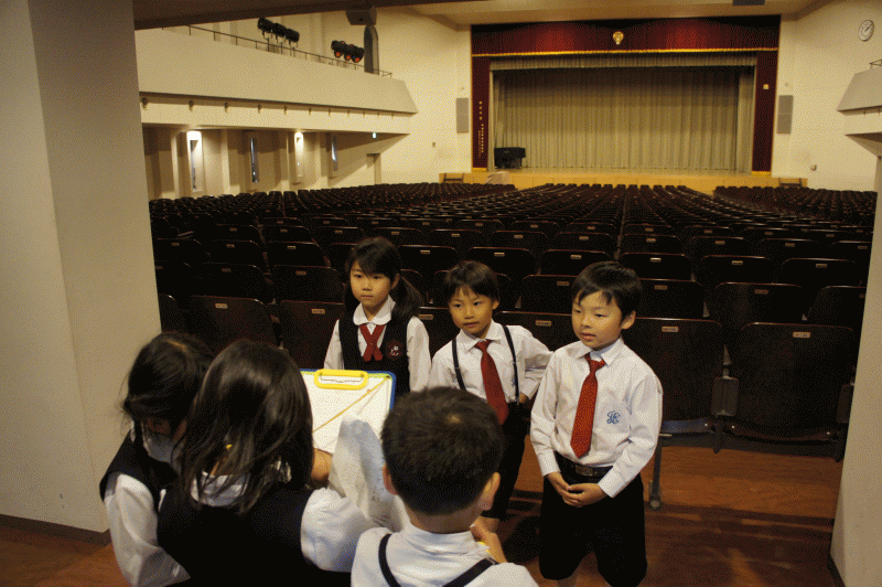 今日、低学年の子どもたちは2年生が1年生を連れて行う「学校案内」を行いました。