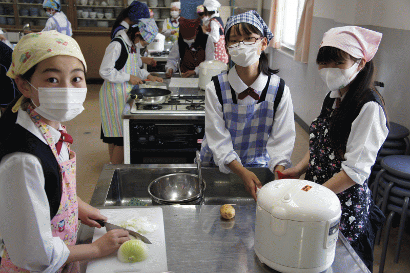 今日は久々の調理実習の日。5年生でご飯とみそ汁を作ってからしばらくたってます。27日のネイチャースクールにむけてカレーに挑戦です。
