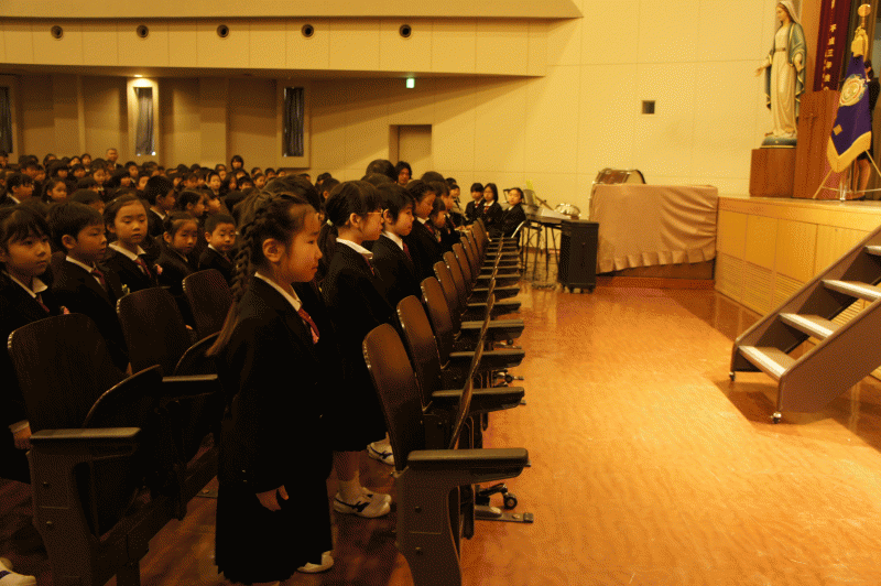全 3007 件(全602ページ) 過去のページもご覧いただけます ⇒ 前へ 601 | 602 | 2012/4/9 入学式 今日は入学式、記念すべき60期目の子どもたちです。 期待と緊張の入り混じった面持ちで、城星学園の校門をくぐります。今年度は98名の子どもたちが入学しました。 期待と緊張の入り混じった面持ちで、城星学園の校門をくぐります。今年度は98名の子どもたちが入学しました。 「担任の先生はどんなかな」「仲の良い友達はできるかな」子どもたちのドキドキが伝わってきます。 「担任の先生はどんなかな」「仲の良い友達はできるかな」子どもたちのドキドキが伝わってきます。 いよいよ入学式、大きな拍手に迎えられて子どもたちが入場します。 いよいよ入学式、大きな拍手に迎えられて子どもたちが入場します。 一人一人先生に名前を呼ばれた子どもたち、元気に「はい!」と返事ができました。 一人一人先生に名前を呼ばれた子どもたち、元気に「はい!」と返事ができました。 月曜日からはさっそく授業が始まります。これからの6年間が子どもたちにとっての実りとなりますように。 月曜日からはさっそく授業が始まります。これからの6年間が子どもたちにとっての実りとなりますように。 入学式 2012/4/9 今日は入学式、記念すべき60期目の子どもたちです。 期待と緊張の入り混じった面持ちで、城星学園の校門をくぐります。今年度は98名の子どもたちが入学しました。 期待と緊張の入り混じった面持ちで、城星学園の校門をくぐります。今年度は98名の子どもたちが入学しました。 「担任の先生はどんなかな」「仲の良い友達はできるかな」子どもたちのドキドキが伝わってきます。 「担任の先生はどんなかな」「仲の良い友達はできるかな」子どもたちのドキドキが伝わってきます。 いよいよ入学式、大きな拍手に迎えられて子どもたちが入場します。 いよいよ入学式、大きな拍手に迎えられて子どもたちが入場します。 一人一人先生に名前を呼ばれた子どもたち、元気に「はい!」と返事ができました。 一人一人先生に名前を呼ばれた子どもたち、元気に「はい!」と返事ができました。 月曜日からはさっそく授業が始まります。これからの6年間が子どもたちにとっての実りとなりますように。 月曜日からはさっそく授業が始まります。これからの6年間が子どもたちにとっての実りとなりますように。 2012/4/6 始業式 今日は始業式!久しぶりに学校に子どもたちの元気な声が響きました。 ドキドキの新学期、一つ上の学年になった子どもたち、まずは靴箱で新しいクラス分けを見ます。「あった〜!!」「一年よろしくね!!」子どもたちで声の掛けあいです。 ドキドキの新学期、一つ上の学年になった子どもたち、まずは靴箱で新しいクラス分けを見ます。「あった〜!!」「一年よろしくね!!」子どもたちで声の掛けあいです。 新しい教室では、さっそく自分の席探しとご近所へのあいさつ回り。大人も子どももやることは変わりませんね。 新しい教室では、さっそく自分の席探しとご近所へのあいさつ回り。大人も子どももやることは変わりませんね。 始業式は学校での新しい1年の始まりです。気持も引き締まります。 始業式は学校での新しい1年の始まりです。気持も引き締まります。 始業式の後に新しく城星学園に来られた先生方の紹介がありました。手前から2年A組担任の、竹下雄貴先生2年C組担任の、大久保美来先生3年A組担任の、渡邊野音先生算数と社会を教えてくださる勇元一眞先生英語の辰巳陽子先生そして図書館のお世話をしてくださる井場世子さんです。 始業式の後に新しく城星学園に来られた先生方の紹介がありました。手前から2年A組担任の、竹下雄貴先生2年C組担任の、大久保美来先生3年A組担任の、渡邊野音先生算数と社会を教えてくださる勇元一眞先生英語の辰巳陽子先生そして図書館のお世話をしてくださる井場世子さんです。 続いて、今年から一緒に勉強をする転入生の子どもたちの紹介です。2年生には太田澪志くんと、池田将瑛くん3年生には廣上尚也くん4年生に栗岡七海さんみんなしっかりと自己紹介をしてくれました。 続いて、今年から一緒に勉強をする転入生の子どもたちの紹介です。2年生には太田澪志くんと、池田将瑛くん3年生には廣上尚也くん4年生に栗岡七海さんみんなしっかりと自己紹介をしてくれました。 式の後、各教室にもどって先生のお話を聞いたり、学年の準備をしました。 式の後、各教室にもどって先生のお話を聞いたり、学年の準備をしました。 月曜日には新しい1年生を迎えます。今年一年「がんばった!」と自分で自信をもって言える年にしましょう! 月曜日には新しい1年生を迎えます。今年一年「がんばった!」と自分で自信をもって言える年にしましょう! 始業式 2012/4/6 今日は始業式!久しぶりに学校に子どもたちの元気な声が響きました。 ドキドキの新学期、一つ上の学年になった子どもたち、まずは靴箱で新しいクラス分けを見ます。「あった〜!!」「