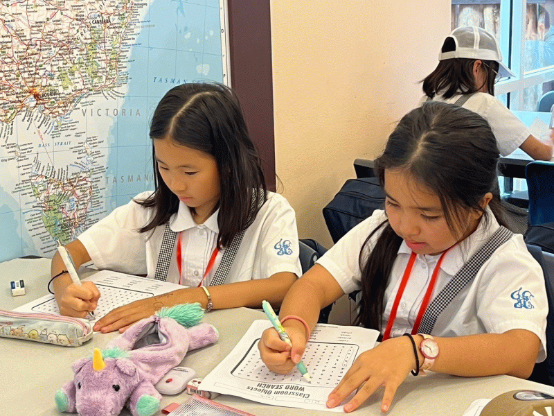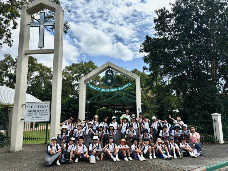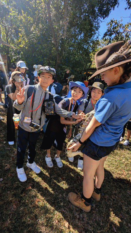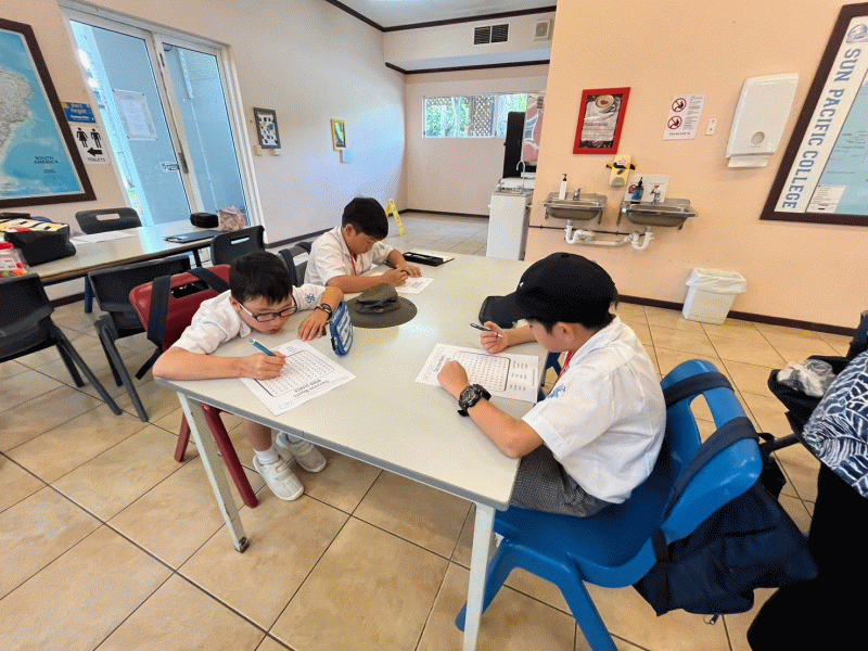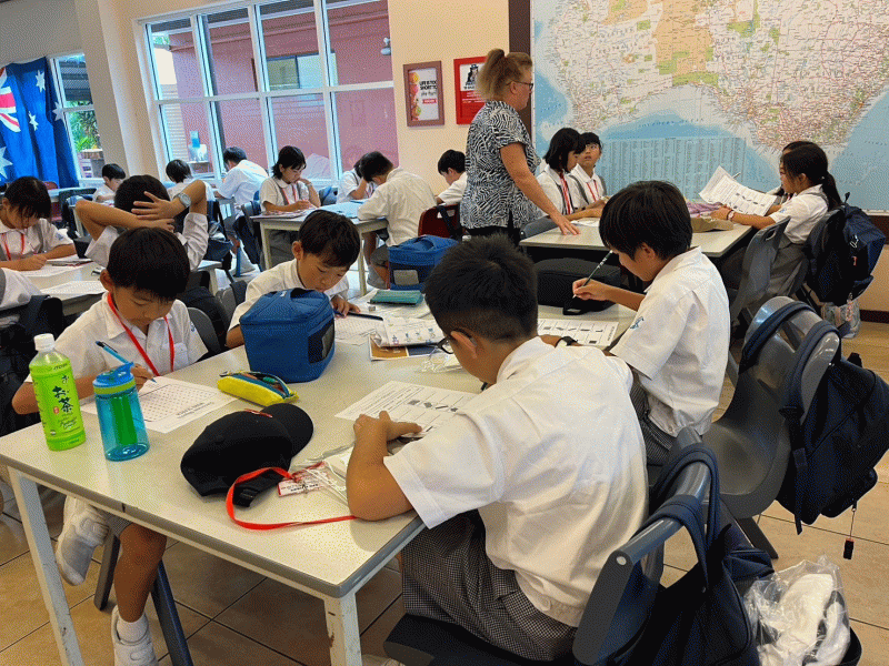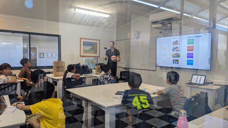 ケアンズ6日目では、現地の小学5年生、6年生との交流会で、はじめにソーラン節を披露した後は全員現地の学校の児童とバディを組み、英語で書かれたいろいろなものを協力して探して、英語で説明するゲームのようなものをやりました。その後は教室に入り、お互いのことを知るために英語で質問タイム!どんな学校か、どこにあるのか、なんの教科が好きかなど、たくさんのことを互いに話しましたまた、パソコンを使って城星のホームページや家の近くの様子を見せていました。野球やアニメの話で盛り上がっている子もいれば、47都道府県を丁寧に説明している子もいました。