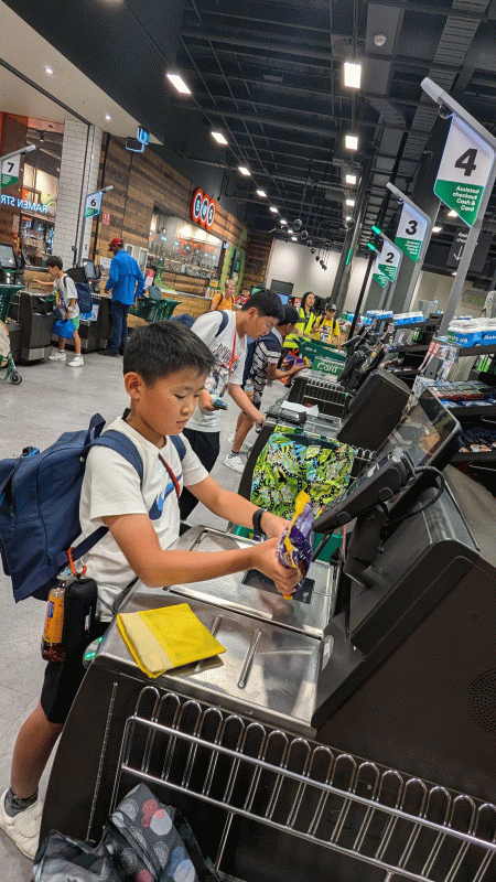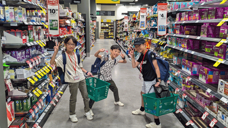 ケアンズ5日目は、ショッピングセンターに買い物にいきました。地元のスーパーに売っているものに目を輝かせながら、買う物を選んでいました。会計の際、セルフレジにチャレンジしている様子も見られ、積極性が芽生えています。チームで楽しい時間も困難も共有し、共に乗り越え成長しています。目に見えるお土産だけでなく、お金で買えない目に見えないお恵みにも気づけています。子どもたちが、相手のことを思って買ったお土産や思い出話をぜひ楽しみにお待ち下さい。