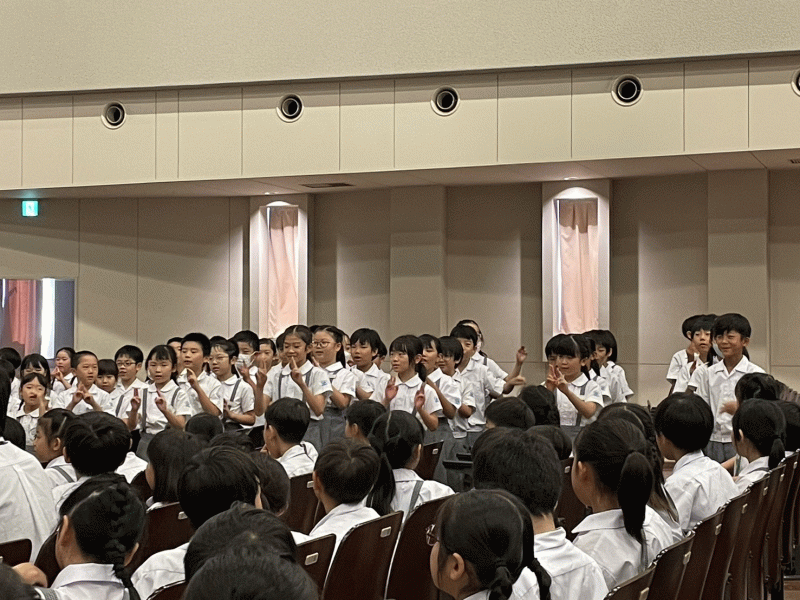 「切手のないおくりもの」を手話とあわせて歌いました。